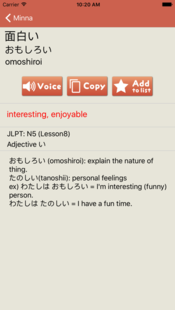 Minna – This basic, yet comprehensive Japanese – English – Japanese dictionary offers a wide variety of everyday words and their various possible meanings and uses in colloquial language. Although it is free, some of the most ‘sophisticated’ words are to be purchased at ‘premium’ level, however one can get by very well with the free version. There is also a ‘voice’ option where you can listen to the translated word with the original tone and stress on the words.