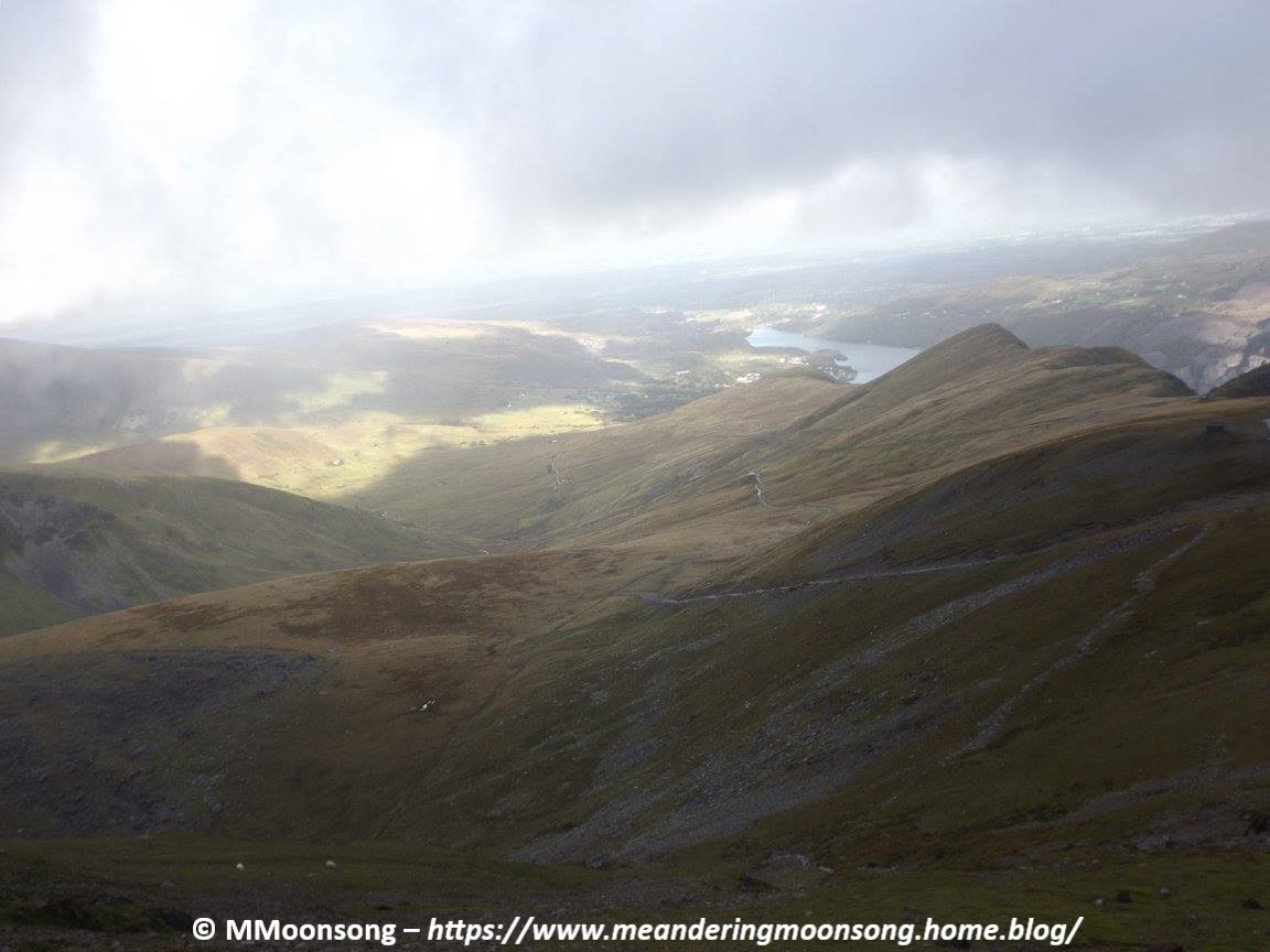 Unfortunately for me, this was not one of those days. Snowdon is close to the sea which means that the weather changes frequently. The only thing I saw from the summit was a wall of mist. I took a photograph with the height marker at the peak, and we went back for the return one-hour ride. Although I did not get to see the famous panorama I was aiming for, I still feel like it was a memorable experience because the journey up the mountain was an adventure in itself. Still – Snowdon remains an unreachable mystery, so perhaps someday I will go back, and who knows, maybe that day I will try to brave one of its rock-climbing routes on foot.