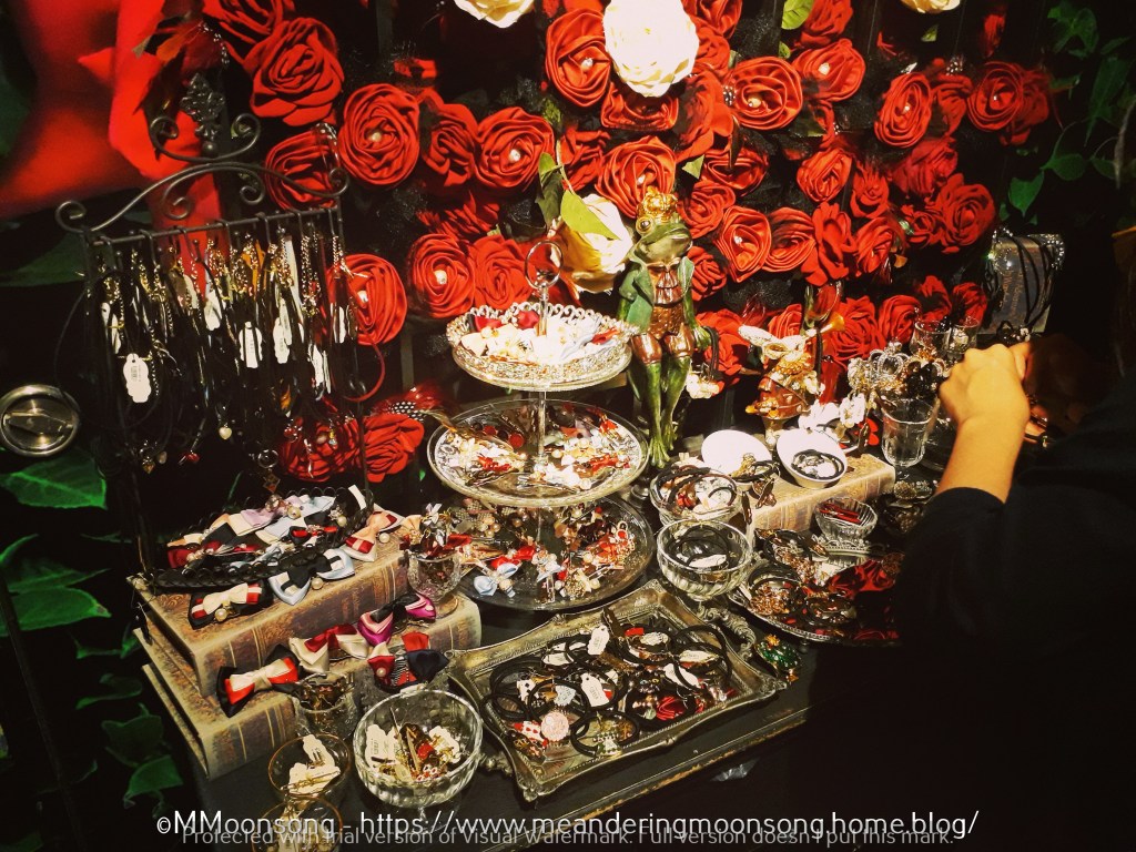 Deciding to spend a kawaii morning, our first stop in Shinjuku after picking up our tickets was the amazing Alice on Wednesday – an Alice in Wonderland themed shop tucked into a side-street but which is quiet large, spreading its magical wares on three floors of girly jewellery in the shape of roses, teacups and top-hats, rabbit mugs, ‘eat me’ and ‘drink me’ cookies, sweets and playing cards, and even handbags in the shape of clocks (I couldn’t help but buying one of these). My boyfriend looked like an elephant in a tea-house, but I appreciate the fact that he waited while I browsed every item minutely, surrounded by other shrieking girls, teens, older women and even toddlers. If you are an Alice in Wonderland aficionado, you can read more about it here.